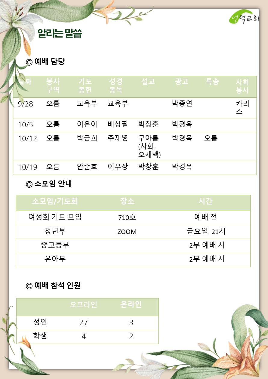 예배 및 활동