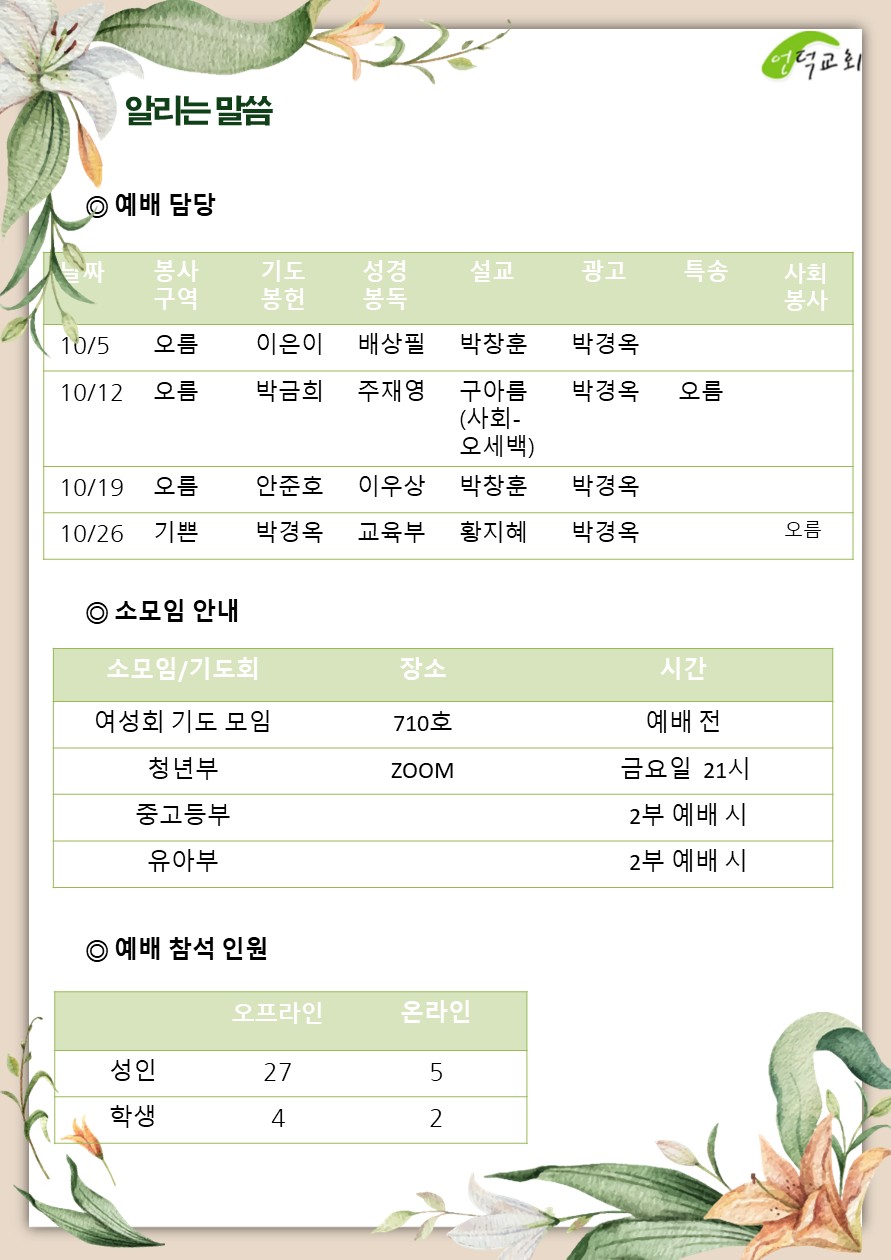 예배 및 활동